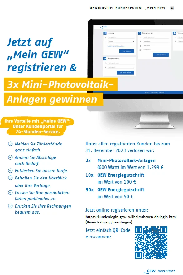- 10x GEW Energiegutschrift im Wert von 100 €
